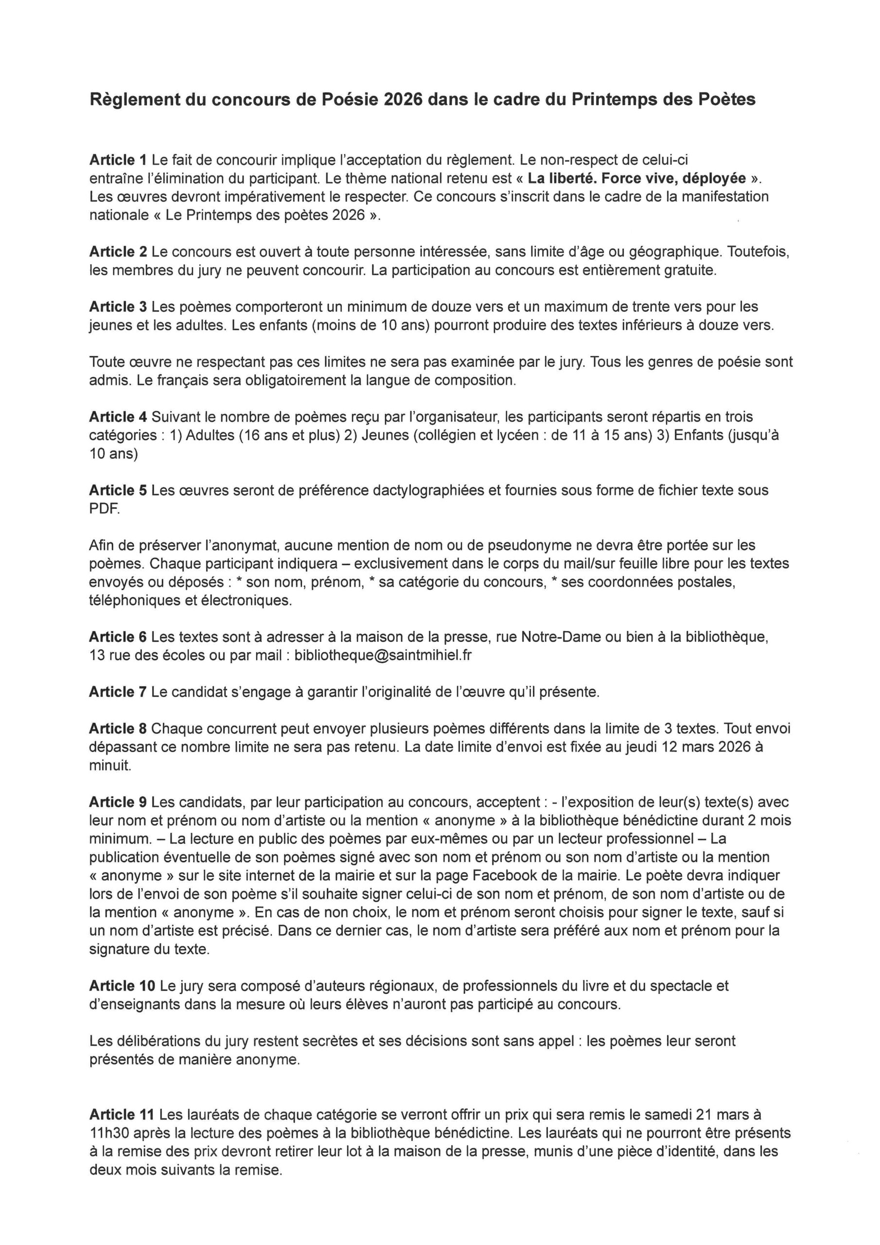 Venez déposer vos poèmes à la bibliothèque 13 rue des écoles ou à la presse Saint-Mihiel avant le 12 mars